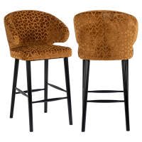 The Indigo bar stool in gold triangle is a stylish and luxurious addition to any bar or kitchen island. The velvet-soft upholstery in a warm gold color features a subtle geometric pattern, giving the stool a modern and playful look. The comfortable, rounded backrest and sturdy seat make Indigo not only attractive but also delightful to sit on. The black metal legs provide a strong and stable frame, and the built-in footrest adds extra comfort. This bar stool adds a touch of elegance and sophistication to your interior.