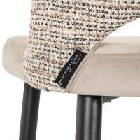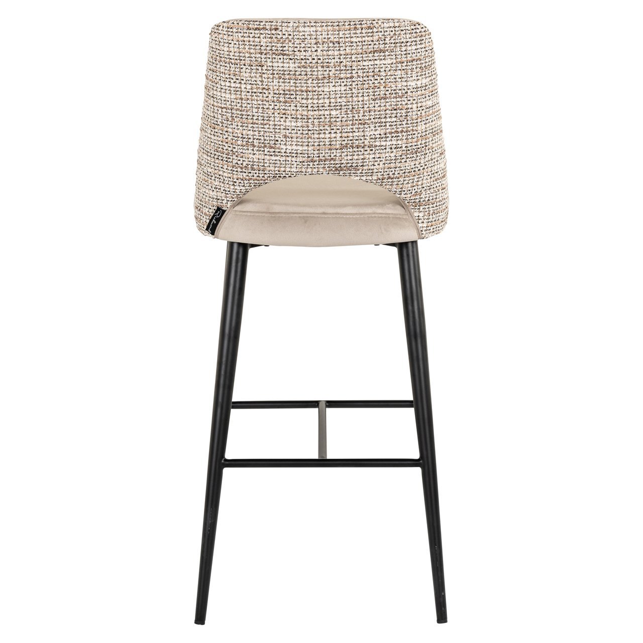 The Tabitha bar stool in trendy nature and quartz khaki offers a refined blend of style and comfort. The seat, upholstered in a soft, velvety fabric in trendy nature, creates a luxurious appearance, while the backrest with woven quartz khaki accents provides a subtle and elegant contrast. The black metal legs with a convenient footrest offer stability, making the stool perfect for use at a bar or kitchen island. Tabitha combines modern design with practical functionality, making it an ideal choice for those looking for a stylish yet practical bar stool that fits effortlessly into various interior styles.
