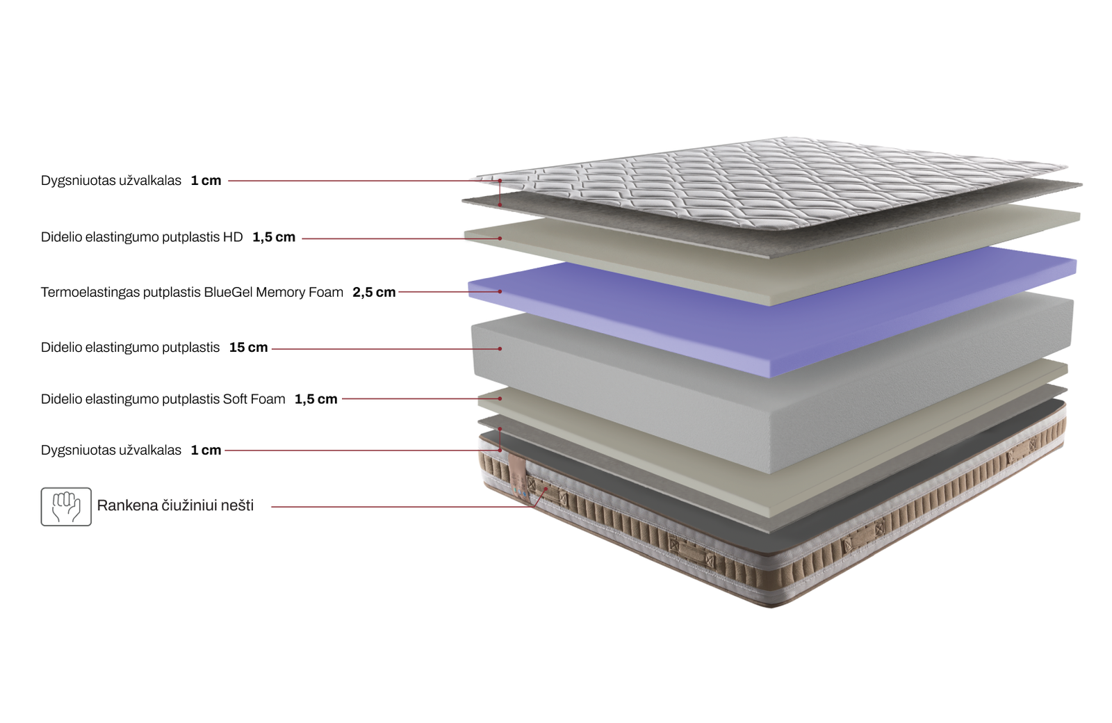 Šio čiužinio konstrukcija užtikrina gerą oro cirkuliaciją, mažesnį prakaitavimą, o priežiūra – paprasta: naudoti pripučiamą čiužinių apsaugą, reguliariai vėdinti, apsaugoti nuo drėgmės. Dėl savo parametrų SIENA puikiai tiks tiek kasdieniam naudojimui namuose, tiek svečiams: lovų sistemose, poilsio kampuose ar svečių kambariuose.