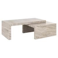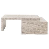The Novaz coffee table set of 2 is a modern and refined addition to any interior, crafted from high-quality marble. This set consists of two rectangular tables that together form a sleek and minimalist design. The use of marble gives the tables a luxurious appearance, while the simple lines and shapes provide a contemporary aesthetic. The tables can be used together or separately, making them both functional and flexible. The Novaz coffee tables are ideal for those looking to add a timeless and elegant accent to the living room.