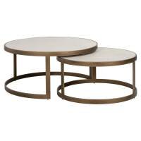 This set of two coffee tables is crafted from premium Oak Veneer with copper-colored metal details. The tabletops with whitebone design are supported by sturdy metal legs, giving them a modern yet timeless appearance. Whether you place them together or separately, these tables are a valuable addition to any living room.