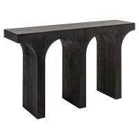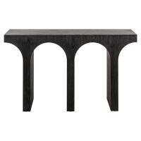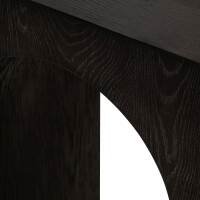 Console Ashford is finished in deep oak veneer and features a bold sculptural base. A rich statement piece that brings structure and contrast to the room.