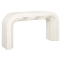 This console table is made of MDF and finished with a light eco-plaster layer. The design features round, layered shapes, providing a simple and understated look. The materials contribute to a sturdy construction, and the neutral finish makes this table suitable for various interior styles. It is a functional piece that subtly integrates into your space.