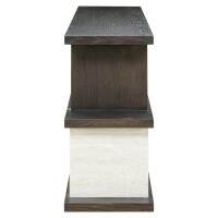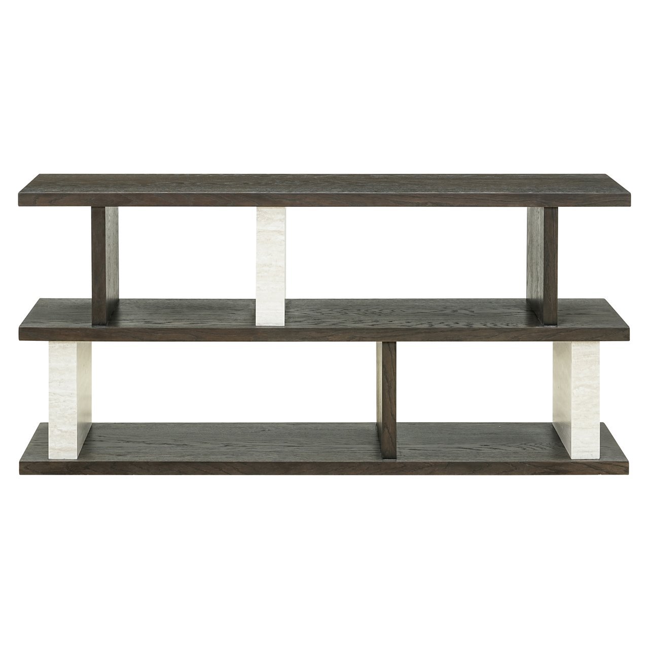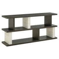 The Waldorf console is a stylish and functional piece, crafted from a combination of wood, plywood, stone, and oak veneer. The design combines natural and modern elements, with sturdy wooden shelves and striking stone accents that create a unique contrast. The oak veneer finish adds a warm and refined look to the table. This console table offers not only practical storage but also serves as a decorative element that fits perfectly into various interior styles.