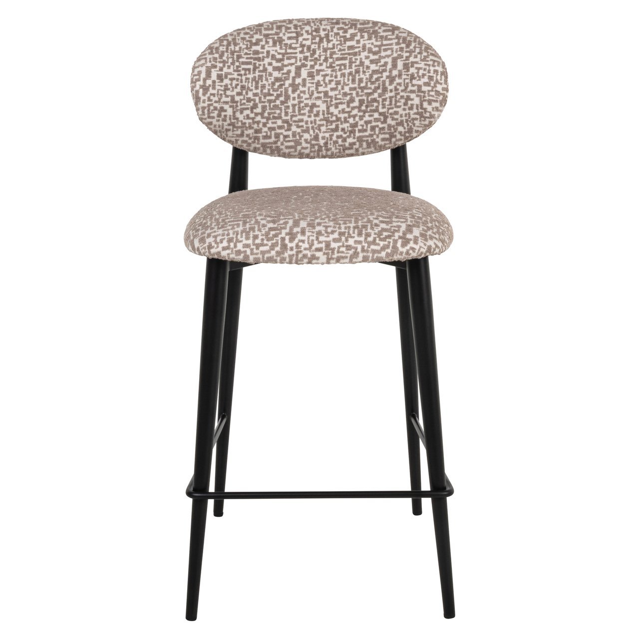 Counter stool Dantes in natural geo fabric features a modern open-back seat and black frame. Fire retardant and suitable for kitchen counters. Also available in hazel.