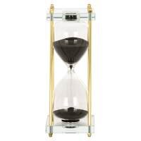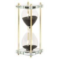 The hourglass Yolina combines the simplicity of glass with the refinement of golden details. The clear glass allows users to observe the sand moving in real-time, which can have a calming effect. The addition of golden details adds a touch of luxury and elegance, making it a beautiful decorative piece for any interior. Perfect for keeping track of time in a stylish manner or simply as an elegant decoration on a bookshelf or desk.