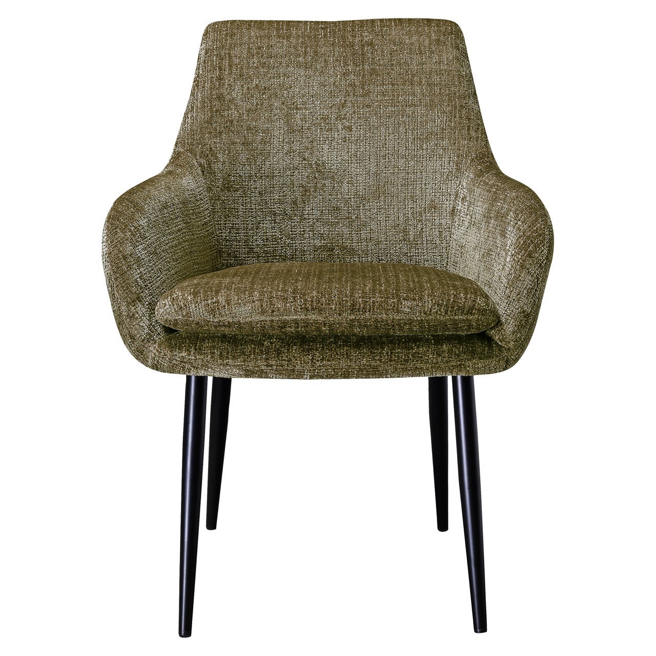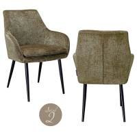 The Chrissy dining chair in stone chenille exudes refinement and comfort. The soft chenille upholstery in a subtle stone color gives the chair a luxurious appearance, while the curved backrest and armrests ensure optimal seating comfort. The timeless design, paired with black metal legs, makes this chair a versatile choice that suits both modern and classic interiors. Chrissy is perfect for those looking for a stylish and comfortable addition to the dining room, with the calming stone hue creating a natural, warm ambiance.