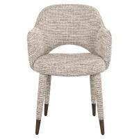 The Donnatella dining chair is a refined choice, available in trendy nature and stone chenille, with the latter offering flame-retardant fabric for added safety. This chair combines comfort and style with a contemporary look. The soft, woven upholstery provides a luxurious feel, while the open back detail gives the chair an airy and modern character. The sturdy legs, finished with subtle metal accents, provide a solid base. Donnatella is perfect for those seeking a stylish dining chair with the option for flame-retardant fabric, making it a safe and practical choice.