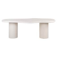 Dining table Bloomstone white 230 features a sculptural base and a smooth top made of eco plaster in a white finish. A refined centrepiece with a soft, organic look, also available in 260 cm length.