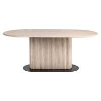 Dining table La Cantera features a beige base with vertical lines and a matching top. Its soft tones and sculptural design make it a sophisticated centrepiece.