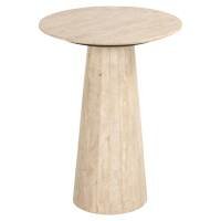 The Cavo end table is crafted from marble, providing a luxurious and timeless appearance. The design is simple and elegant, featuring a round top that rests on a tapered base. The natural marble patterns make each table unique, while the solid construction ensures durability and stability. This end table adds a touch of sophistication to any room and is both functional and decorative.