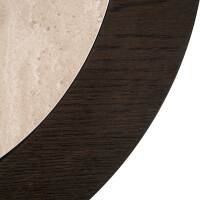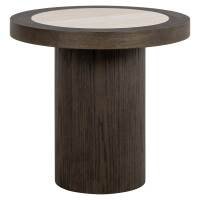 End table Nando combines a warm oak veneer base with a ceramic travertine top. A compact and elegant piece that pairs beautifully with the Ritz collection.