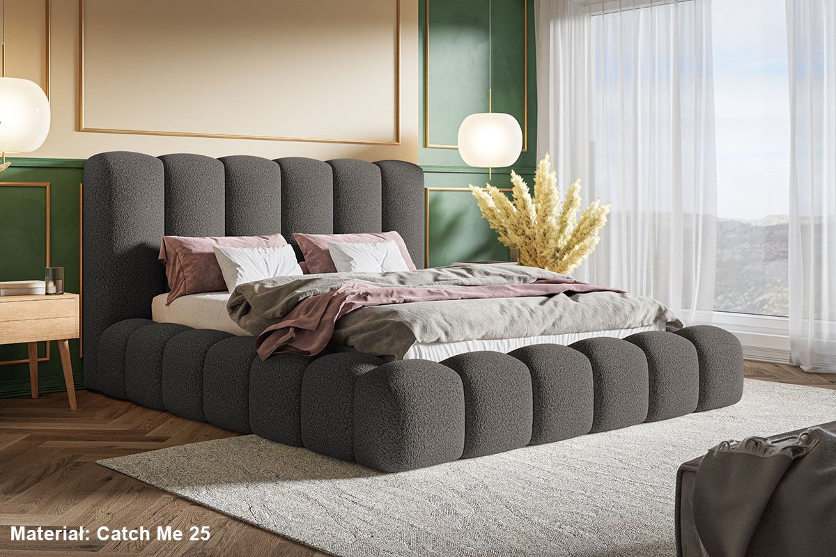 Miegamojo lova Dallas 2 premium yra individualiai gaminamas baldas. Gali būti keičiami išmatavimai bei audinys. Medžiagas galite pasirinkti gyvai atvykus į ekspoziciją arba el.paštu, telefonu.