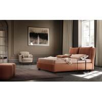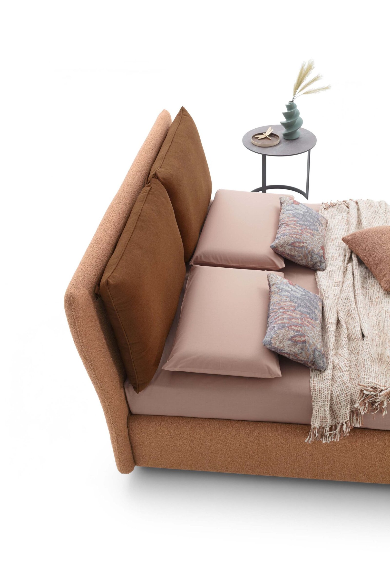 Fris lova turi tvirtą apmuštą pagrindą, kuris tarnauja kaip patogi patalynės dėžė (contenitore), leidžianti optimaliai išnaudoti erdvę ir laikyti namų tekstilę ar kitus daiktus. Dvi lengvos pagalvės su elegantiška apdaila minkština lovos išvaizdą ir suteikia jaukumo pojūtį. Šis dizainas idealiai tinka tiek kasdieniam poilsiui, tiek ilgesniam skaitymui ar televizoriaus žiūrėjimui.