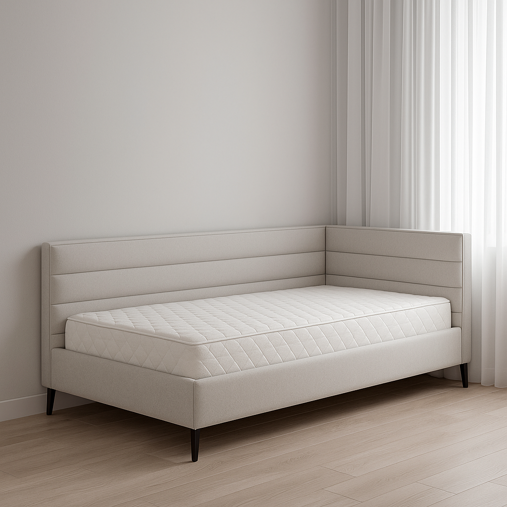 Miegamojo Lova Line su šoniniu bortu gali būti užsakoma ir su čiužiniu. Perkant lovą su čiužiniu, gausite papildomą nuolaidą čiužiniui. Miegamojo baldai: rasite mūsų baldų salone Vilniuje. Norint užsakyti lovas su pasirinktu audiniu ir spalvomis, užsakymo trukmė 3-12 savaičių.