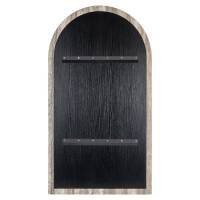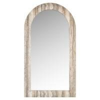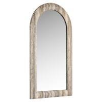 Mirror Calvo features an arched shape and frame finished in grey faux travertine. A refined wall mirror that adds texture and softness to any room.