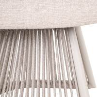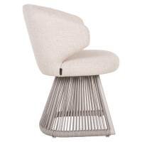 The Nuba dining chair in beige alpine features handwoven Olefin rope with high UV stability, a rust-free aluminium frame and a quick-dry seat cushion with waterproof inner layer. A refined mix of craftsmanship and outdoor performance. Also available in greige alpine.