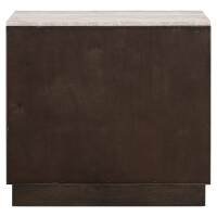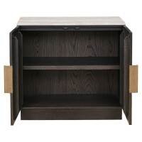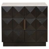 The Claremont sideboard is made from oak veneer, oak wood, travertine, and wood, providing a sturdy and stylish construction. The sideboard features two doors with a geometric pattern, giving it a modern and striking appearance. The stone top adds a luxurious and durable element. This sideboard offers practical storage and is a perfect blend of design and functionality, suitable for various interior styles.