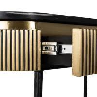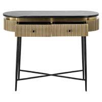 The Ironville Console Table brings timeless elegance to your interior, marked by an authentic marble top and sophisticated golden accents. The sturdy construction meets classical beauty, ensuring this table not only offers a functional surface but also imparts a subtle grandeur to your living space. Perfect for displaying decorative items or for everyday use.