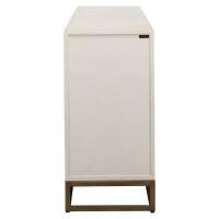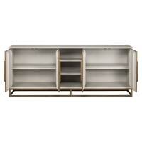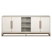 This sideboard combines the natural beauty of Oak Veneer with the industrial look of copper-colored metal. The four doors open to a spacious interior, ideal for storing your belongings. The whitebone finish on the Oak Veneer and the copper-colored metal details make this sideboard a stylish and functional piece of furniture for your interior.