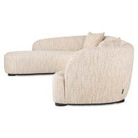 Sofa Pandora lounge left features sculptural curves and fixed cushions in beige angora. A striking lounge element that combines comfort and character.