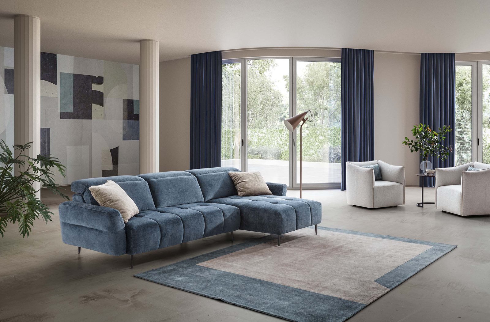 Modulinė sofa Gillan iš Bubble kolekcijos yra modernus, stilingas ir funkcionalus pasirinkimas, skirtas tiems, kurie vertina komfortą ir elegantišką dizainą. Sofa išsiskiria apvaliu dizainu, šezlongu ir reguliuojamais galvos atlošais, kurie leidžia pritaikyti sėdėjimo padėtį pagal individualius poreikius.