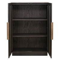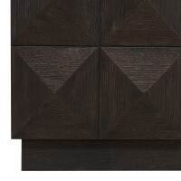 The Claremont cabinet is crafted from oak veneer, oak wood, travertine and wood, offering a robust and elegant appearance. The cabinet has two doors with a striking geometric pattern, giving the design a modern and stylish touch. The stone top adds a luxurious element, while the solid construction ensures durability. This cabinet provides ample storage space and is a functional and aesthetically pleasing piece for various interior styles.
