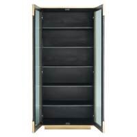 The Finsbury cabinet has two doors and is made with a combination of brass finish, MDF, and glass. The brass finish gives the cabinet an elegant and luxurious look, while the glass doors add a modern touch and subtly reveal the contents of the cabinet. The MDF construction provides durability and sturdiness. This cabinet is a refined choice for storing and displaying decorative items in a stylish interior.