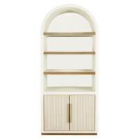 The Tivoli arched storage cabinet blends soft curved lines with panels finished in a delicate, refined fabric texture. The warm-tone mirrored back adds depth and a subtle luxurious glow, creating a sculptural statement in any space. Its light, neutral palette enhances a serene and hotel-chic atmosphere, making it a standout decorative and functional piece.