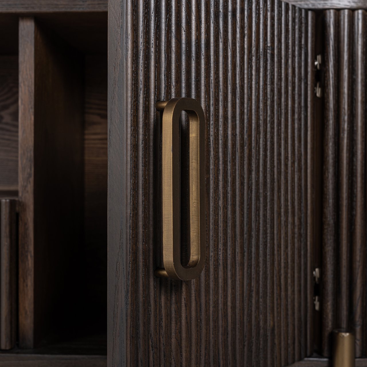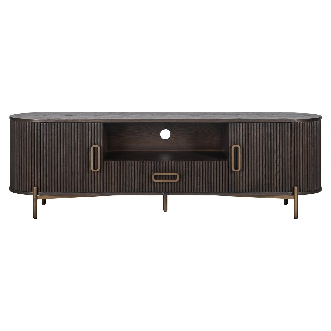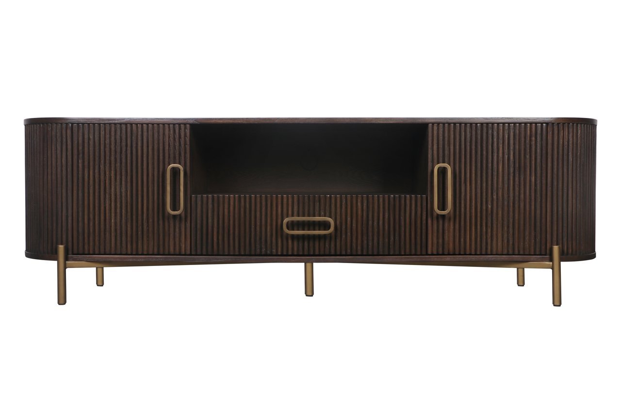 The Luxor TV sideboard, featuring two doors and one drawer, combines style with practicality. Made from high-quality oak with brushed gold accents, this piece brings a touch of luxury to any interior.